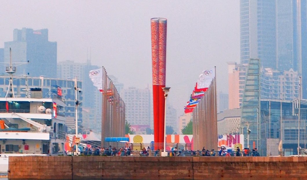 青岛奥帆中心火炬该火炬创建于2009年9月18日,高度为20.08M,取2008年北京举办第二十九届奥运会和第十三届残奥会之意,外形取自北京奥运圣火传递时所使用的火炬。“渊源共生,和谐共融”的祥云图案和立体浮雕式工艺设计使整个火炬高雅华丽,内涵厚重。