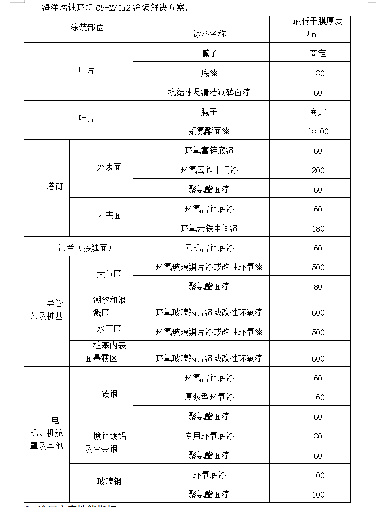 NB/T 31006-2011海上风电场钢结构防腐蚀技术标准 GB/T 31817-2015 风力发电设施防护涂装技术规范 GB/T 1740漆膜耐湿热测定法 GB/T 1771色漆和清漆 耐中性盐雾性能的测定 GB/T 1865色漆和清漆人工气候老化和人工辐射暴露滤过的氙弧辐射