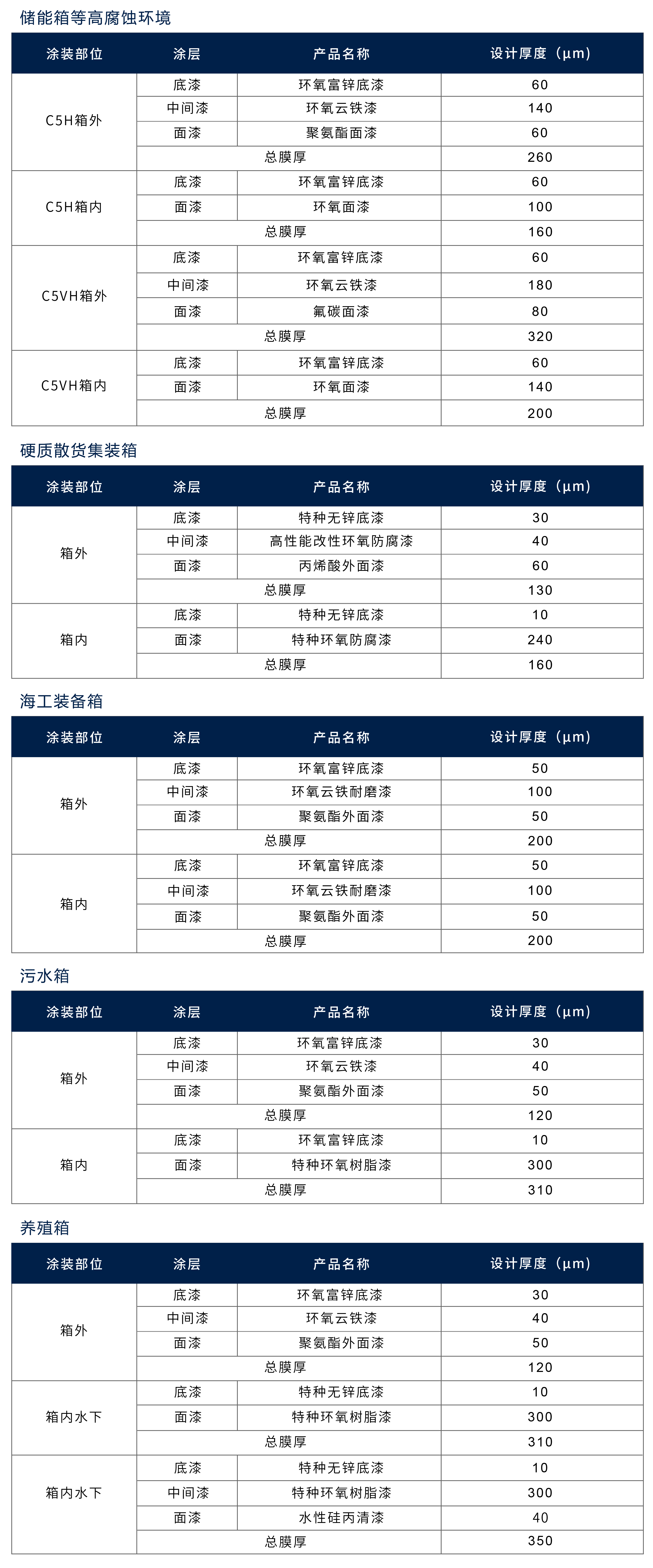 丰富的产品线,满足集装箱制造流水线的工艺涂装要求。涂装工艺卡点箱体生产节拍,贯穿制造始终。膜厚均匀,涂层外观质量优秀,无针孔气泡和流挂等问题。